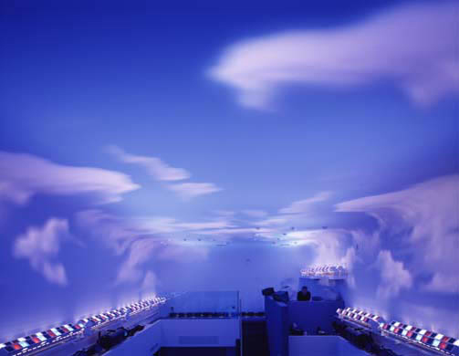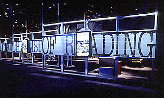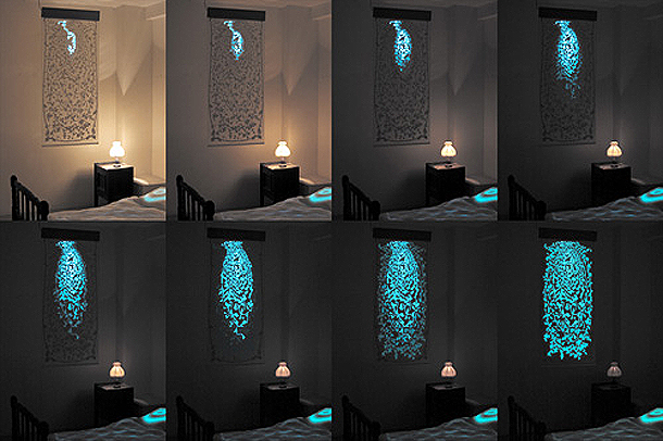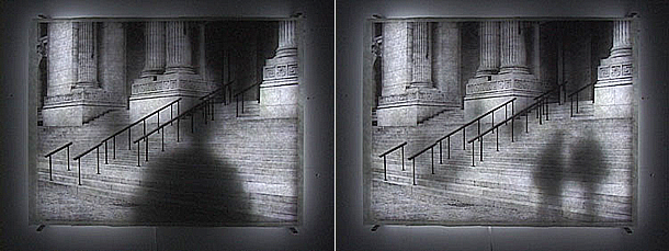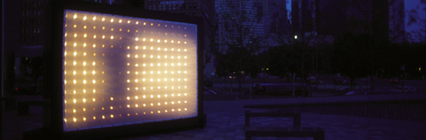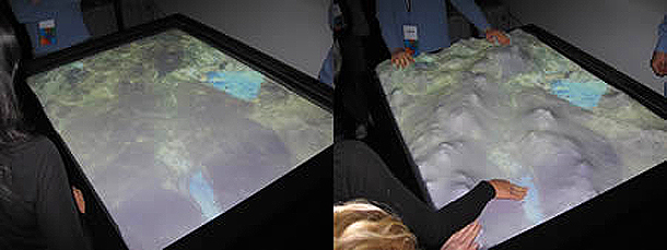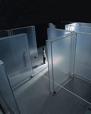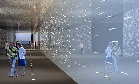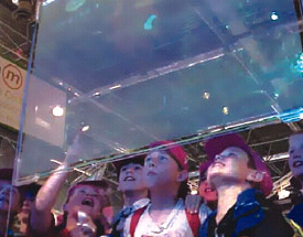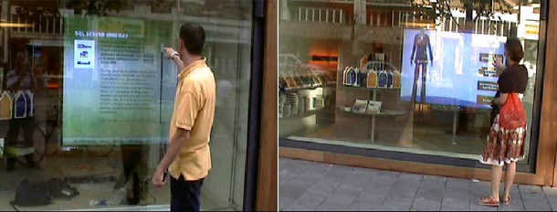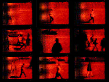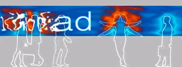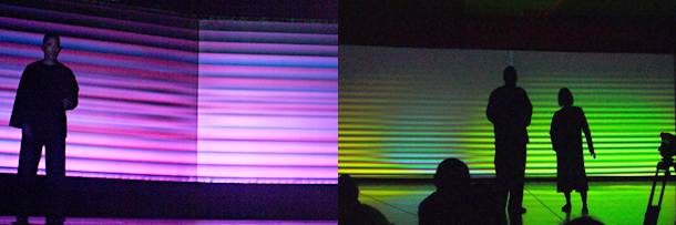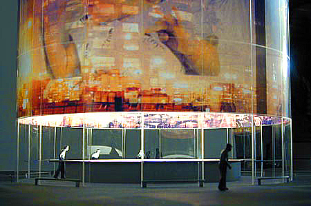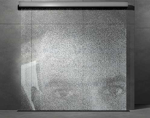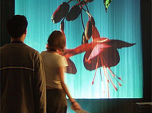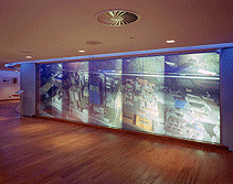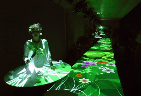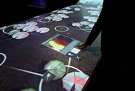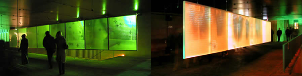 | Elemento ambiental aplicable a paredes o mamparas de separación, crea un entorno reactivo en el que, mediante cámaras de video, el movimiento de los espectadores influye en la generación de efectos visuales. Pueden mostrarse textos e imágenes relacionados con el argumento de la zona expositiva. | ||||||