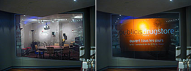 Video wall de pantallas de plasma sin bordes Proyección sobre mamparas translúcidas |