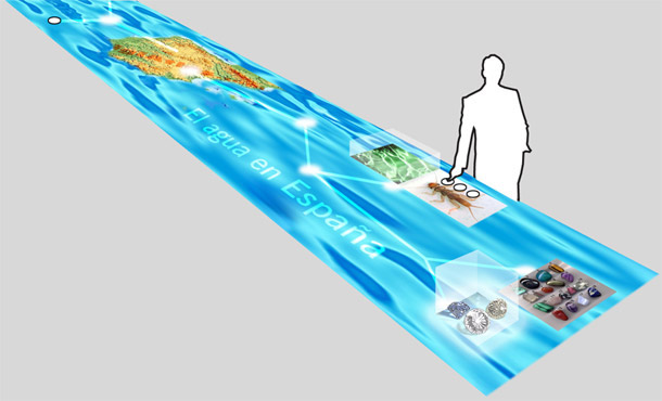 | TECNOLOGÍAS Retroproyección, proyección cenital y pantallas interactivas integradas Integración de elementos físicos (vitrinas, peceras con cámaras de visión microscópica, maquetas, etc...) Vídeo y grafismo interactivo Sincronización gráfica |