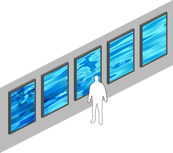 | Instalación basada en monitores de plasma de 65" en modo exposición. Su gran tamaño confiera a la instalación un aspecto "artístico", como cuadros de una exposición. | ||||||