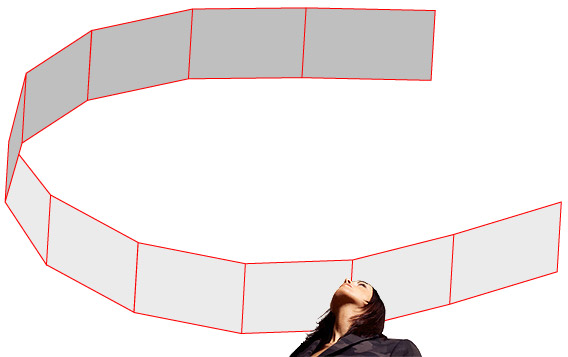 | La pantalla periférica estará situada en la primera planta, rodeando la barandilla. Los proyectores se emplazarán en esta planta en situación cenital. El material de la pantalla deberá permitir su visualización desde ambos lados. | ||||||
