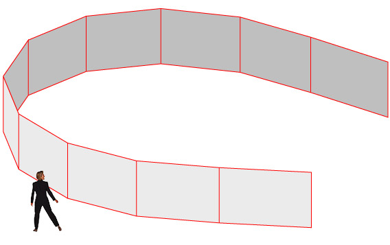 | Esquema de proyección. Los proyectores deberan disponer de optica gran angular para reducir al mínimo la zona de sombra producida por los espectadores. | ||||||