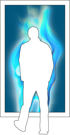 Propuesta gráfica. La imagen generada mezclara la imagen del espectador con el efecto de llamas de gas, integrando el logotipo corporativo en el efecto visual. Si las condiciones de iluminación lo permiten, se aislara la figura del espectador sobre un fondo de color corporativo, simplificando al máximo la composición para dar más énfasis al efecto del fuego y la marca.
