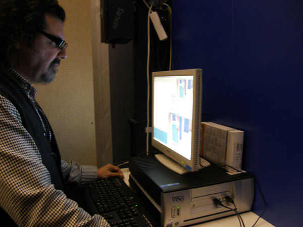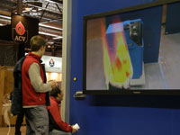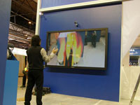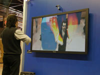 La pantalla sobre la que se visualizará el efecto estará situada en una pared del stand en formato vertical. La cámara, situada sobre ella, captará la imagen de los visitantes; un sistema de procesado de video detectará las zonas en movimiento de la figura y generará a partir de ellas el efecto deseado.