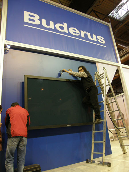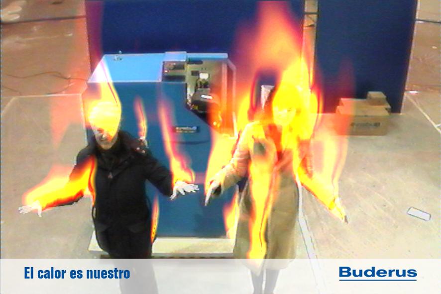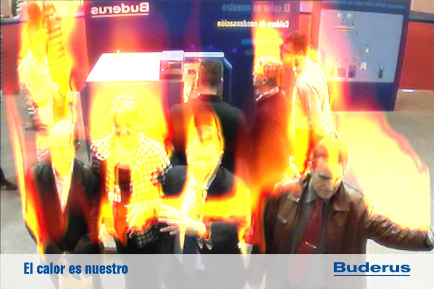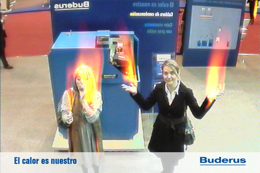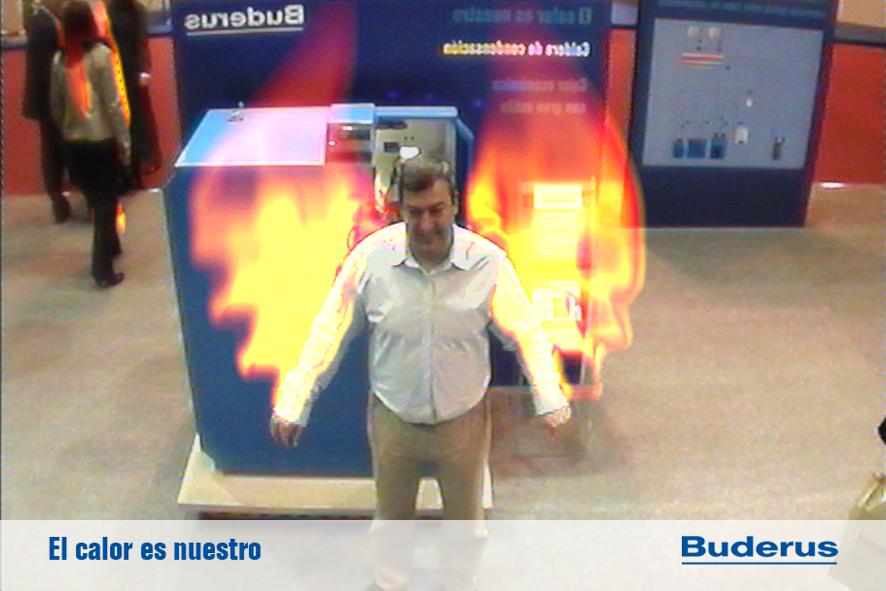 FLAMMA es una instalación diseñada para el stand de Buderus en el certamen de Climatización. La instalación simula un efecto visual de fuego sobre la imagen de los espectadores, esta imagen puede ser capturada e impresa como objeto promocional y regalo a los asistentes.