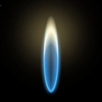 El efecto visual está basado en el proyecto FIRE - será adaptado al formato vertical y modificado el color para que simule una llama azulada de gas.